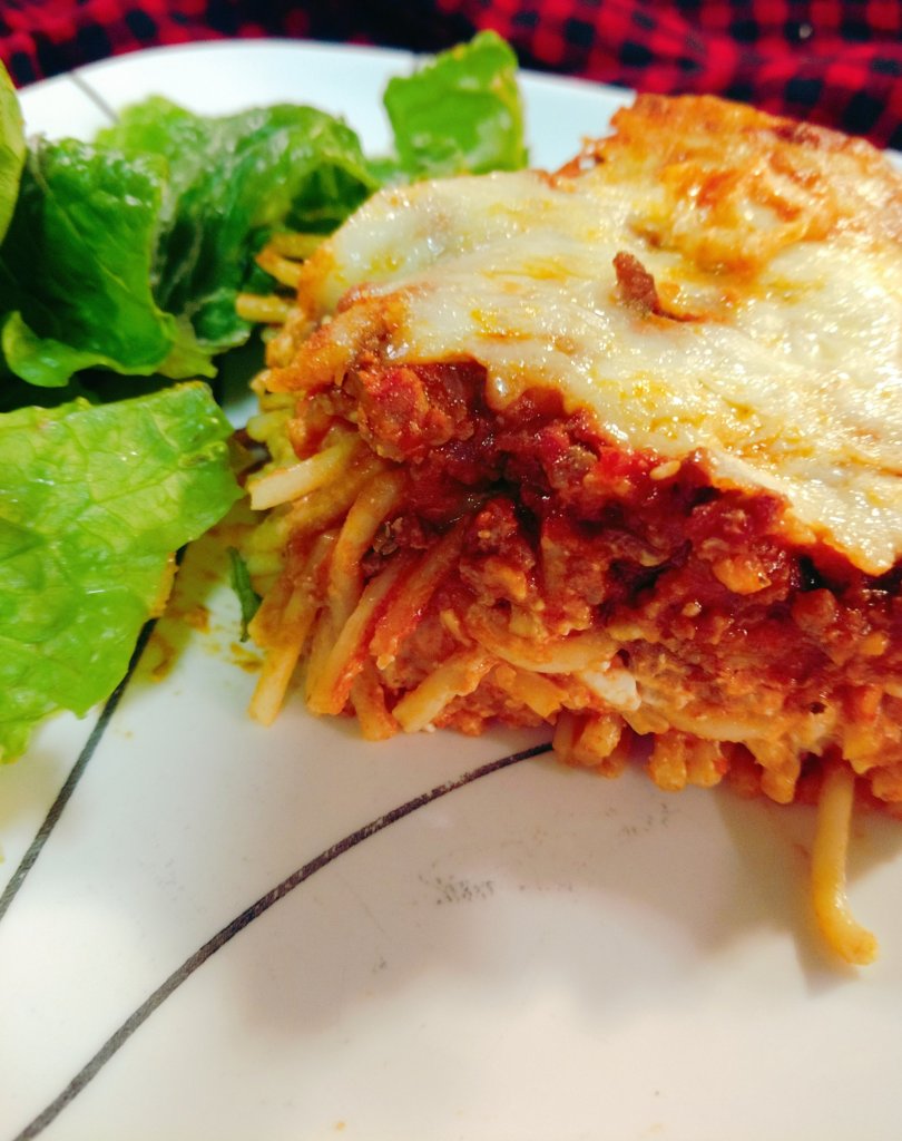 - Put your now 500 pound casserole into the oven and bake for 30 minutes. If you wanna get kinda cray, you can totally switch it to broil and brown the cheese a little at the very end, but be super duper careful or you’ll burn the hell out of this and that’s going to be disappointing.