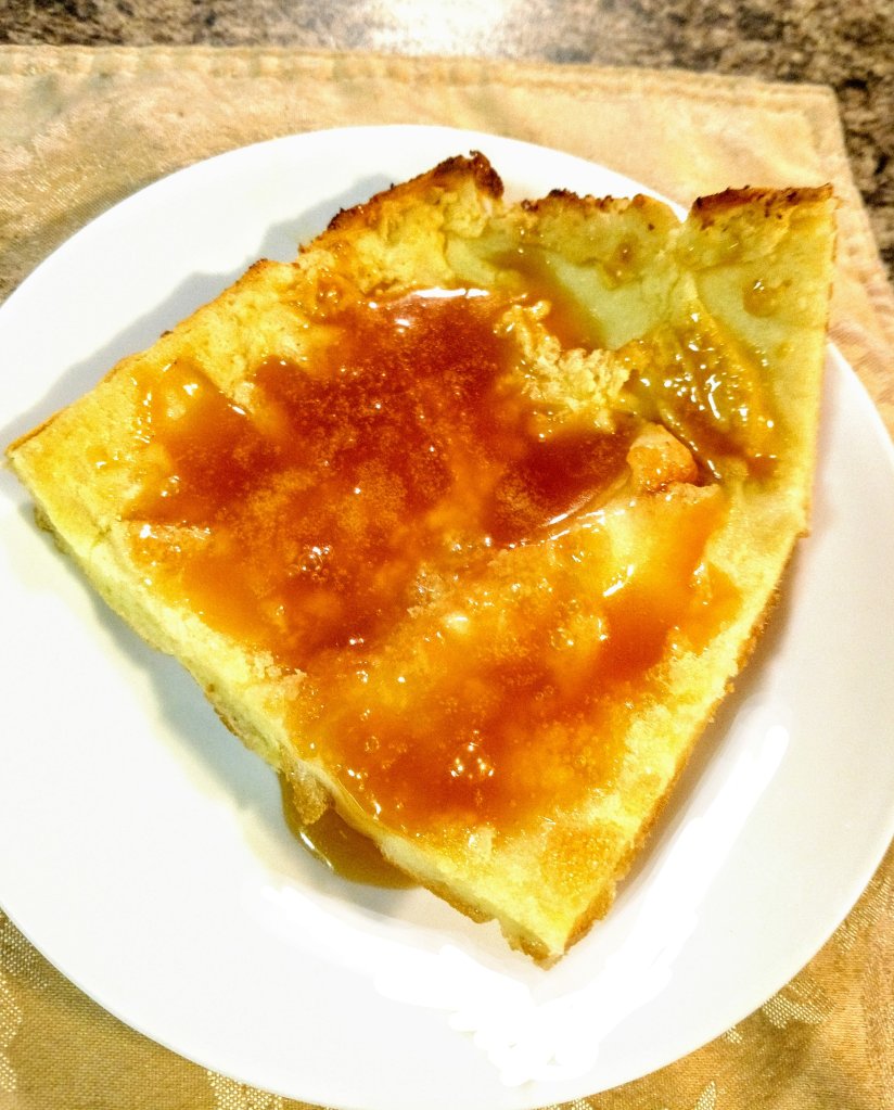 - Once the butter has melted in the oven, dump your egg mixture into the butter in the pan.